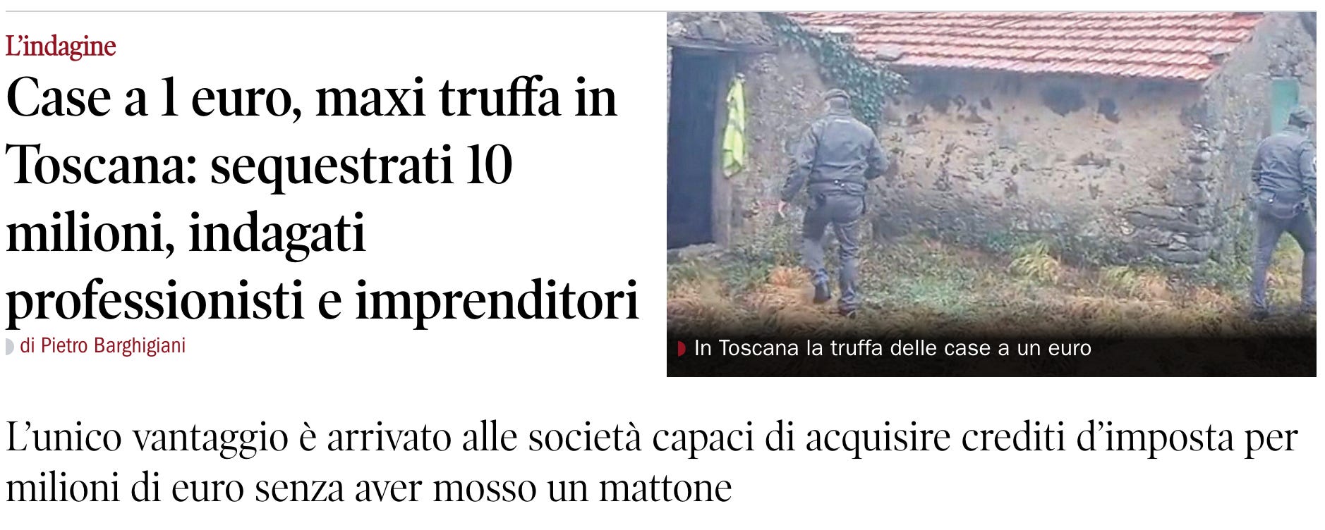 What the recent Tuscany investigation reveals about €1 homes, bonuses and misplaced expectations