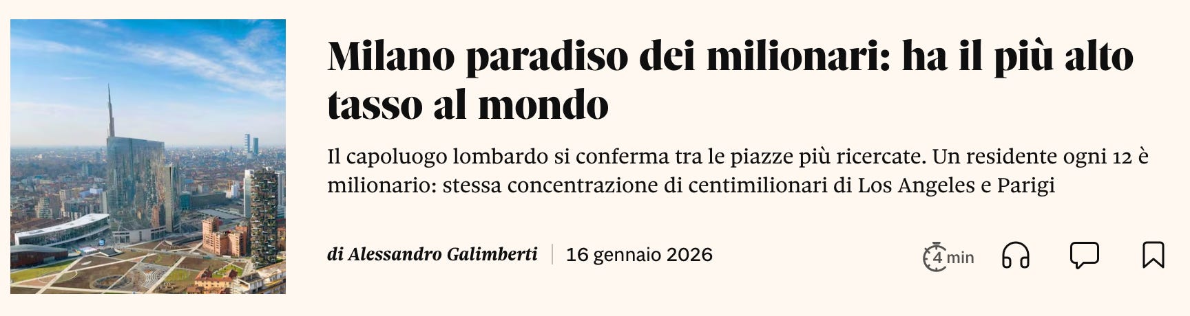 In recent days Milan has been widely celebrated in the Italian and international press as a global success story: the city with the highest concentration of millionaires in the world, a safe haven for returning Italian wealth and foreign capital, a European hub that “made it”.