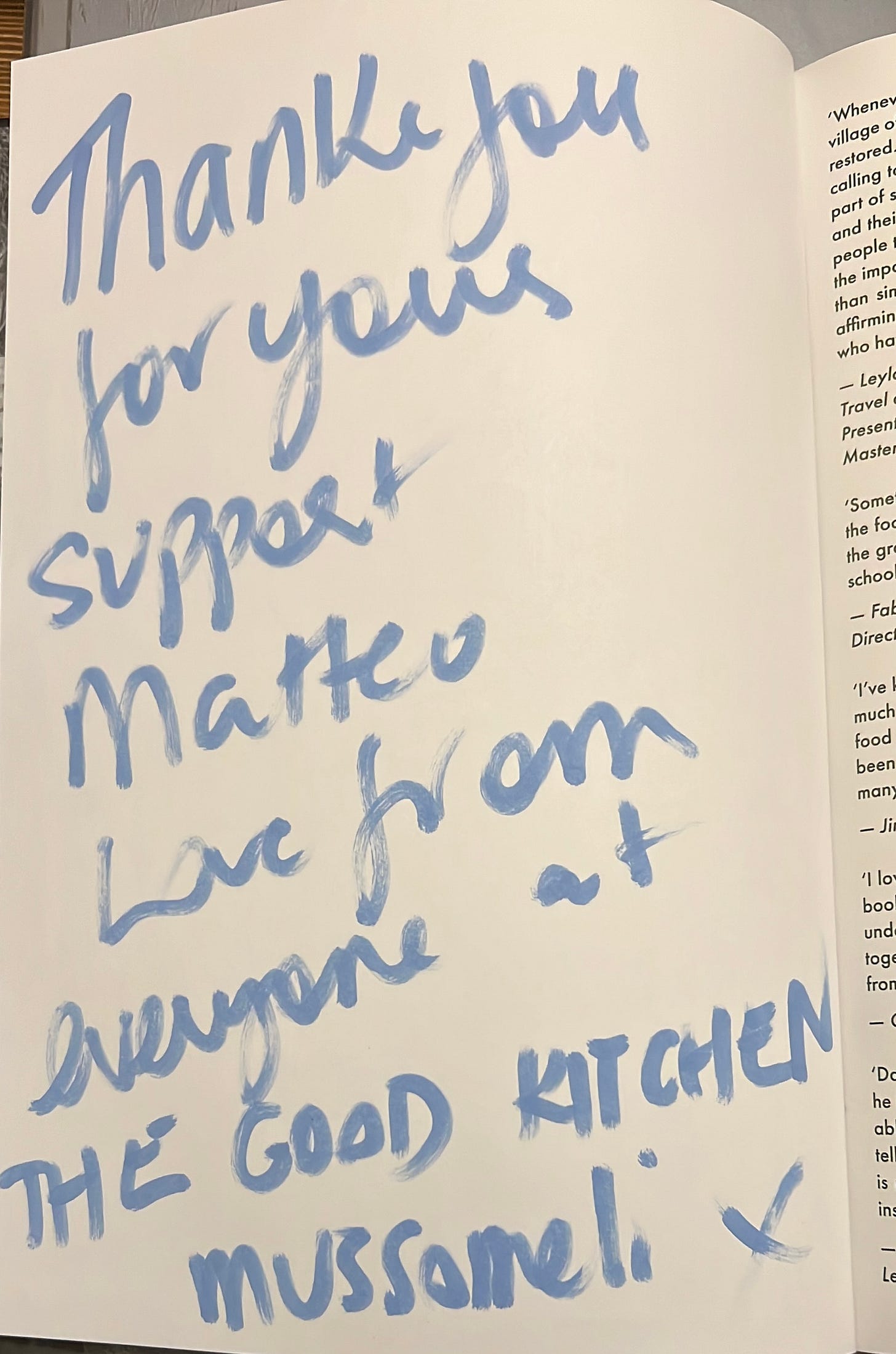 When I came back in front of The Good Kitchen, after their Sunday service, he was still there. Waiting before pulling down the shutter and allowing himself a bit of well-deserved rest. For me, a small gift with a dedication. From friends. From Danny and his small-big community.