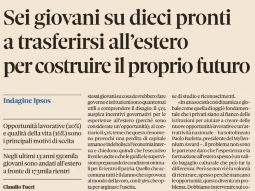 Going abroad shouldn’t always be seen as an attempt to run away. Many young people leave not out of frustration, but out of desire, curiosity, and the need to challenge themselves. For some, it may be the first true step toward personal growth: learning how to manage on your own, how to build new networks, how to see the world through different eyes. When young people themselves – as revealed by the Ipsos survey published in Il Sole 24 Ore – point to international mobility as one of the most valuable experiences for their development, perhaps it’s not a warning sign, but an educational opportunity we can no longer ignore.